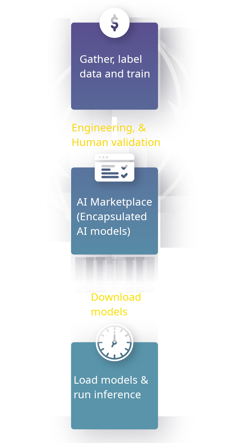 VisionCapsules encapsulate AI algorithms to eliminate the engineering overhead of model deployment. The architecture allows AI inference to run continuously, ensuring any model can be updated at any time without downtime. Building on this foundation, Synthall fully automates the lifecycle by integrating an AI marketplace directly into your data center—enabling seamless deployment with zero human intervention.